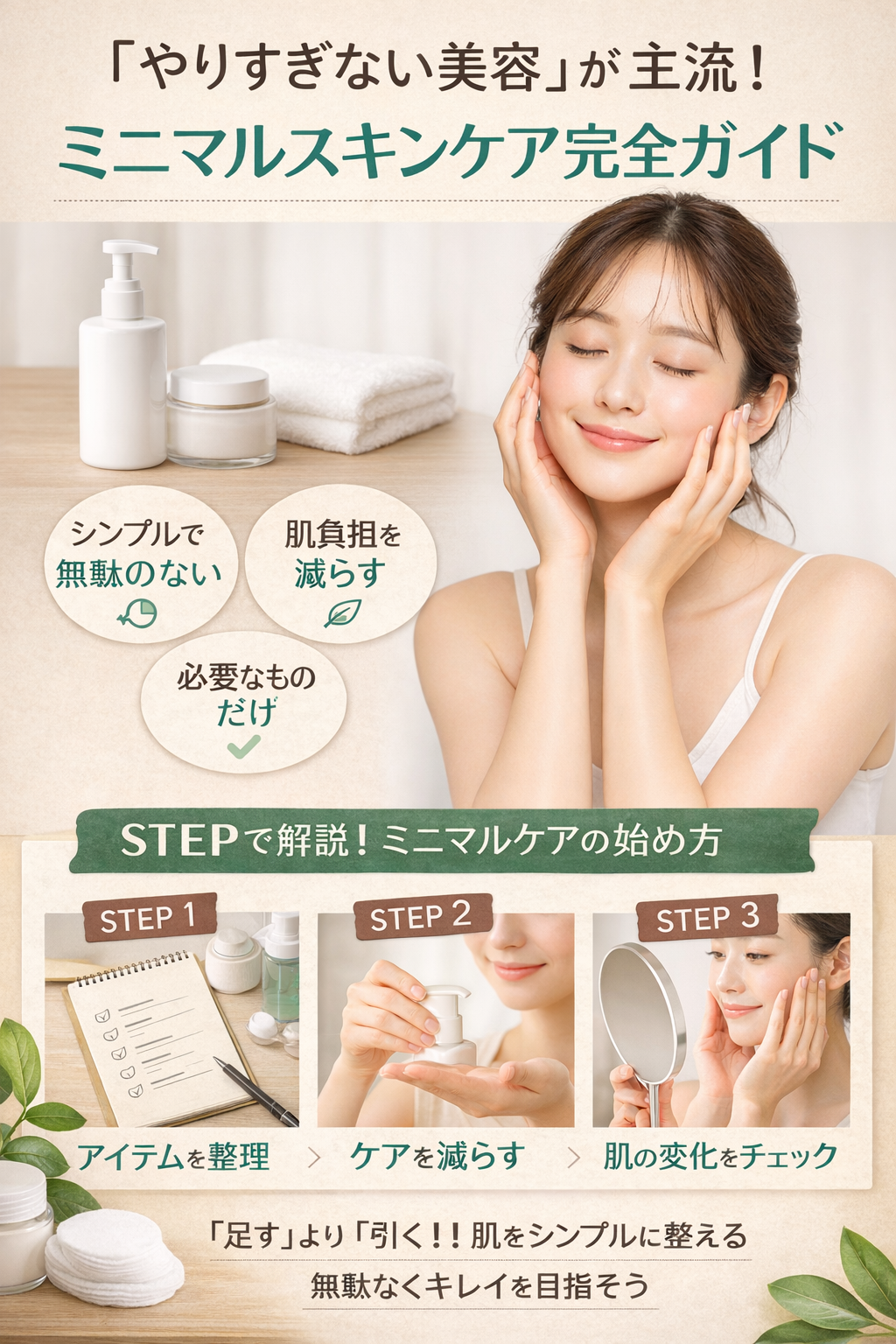 本記事では、ミニマルスキンケアの基本から実践方法、メリット・注意点までをわかりやすく解説します。